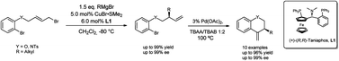 Catalytic asymmetric synthesis of chromenes and tetrahydroquinolines via sequential allylic alkylation and intramolecular Heck coupling