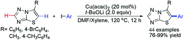 Cu-catalyzed direct C–H bond functionalization: a regioselective protocol to 5-aryl thiazolo[3,2-b]-1,2,4-triazoles