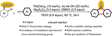 Chelation-assisted Pd-catalysed ortho-selective oxidative C–H/C–H cross-coupling of aromatic carboxylic acids with arenes and intramolecular Friedel–Crafts acylation: one-pot formation of fluorenones