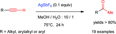 Mild chemo-selective hydration of terminal alkynes catalysed by AgSbF6