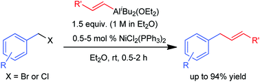An efficient nickel-catalyzed alkenylation of functionalized benzylic halides with alkenylaluminum reagents