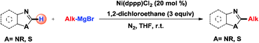 Nickel catalyzed alkylation of N-aromatic heterocycles with Grignard reagents through direct C–H bond functionalization