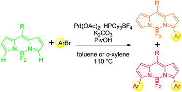 Direct palladium-catalysed C–H arylation of BODIPY dyes at the 3- and 3,5-positions