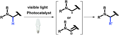 Photoredox functionalization of C–H bonds adjacent to a nitrogen atom