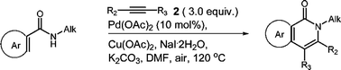 Synthesis of N-alkyl and N-aryl isoquinolones and derivatives via Pd-catalysed C–H activation and cyclization reactions
