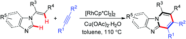 Rhodium(iii)-catalyzed vinylic sp2 C–H bond functionalization: efficient synthesis of pyrido[1,2-α]benzimidazoles and imidazo[1,2-α]pyridines