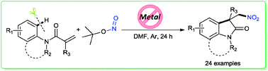 Metal-free nitro-carbocyclization of activated alkenes: a direct approach to synthesize oxindoles by cascade C–N and C–C bond formation