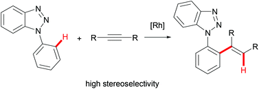 Rhodium-catalyzed intermolecular hydroarylation of internal alkynes with N-1-phenylbenzotriazoles