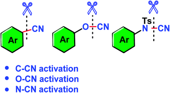 Transformations of X (C, O, N)–CN bonds: cases of selective X (C, O, N)–C activation