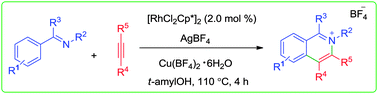 Rh(iii)-catalyzed synthesis of 1-substituted isoquinolinium salts via a C–H bond activation reaction of ketimines with alkynes