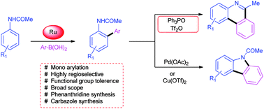 Ruthenium-catalyzed ortho-arylation of acetanilides with aromatic boronic acids: an easy route to prepare phenanthridines and carbazoles