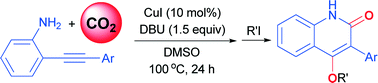 Cu(i)-catalyzed chemical fixation of CO2 with 2-alkynylaniline into 4-hydroxyquinolin-2(1H)-one