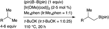 Iridium-catalysed borylation of sterically hindered C(sp3)–H bonds: remarkable rate acceleration by a catalytic amount of potassium tert-butoxide