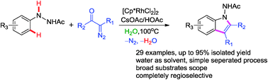 Rh(iii)-catalyzed synthesis of 1-aminoindole derivatives from 2-acetyl-1-arylhydrazines and diazo compounds in water