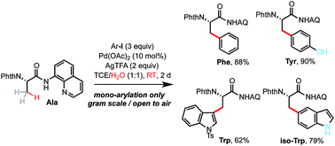 Palladium-catalyzed trifluoroacetate-promoted mono-arylation of the β-methyl group of alanine at room temperature: synthesis of β-arylated α-amino acids through sequential C–H functionalization