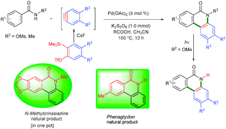 Palladium-catalyzed cyclization of benzamides with arynes: application to the synthesis of phenaglydon and N-methylcrinasiadine