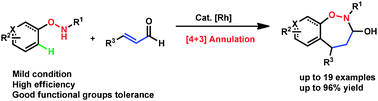 Rhodium(iii)-catalyzed C–H activation/[4+3] annulation of N-phenoxyacetamides and α,β-unsaturated aldehydes: an efficient route to 1,2-oxazepines at room temperature
