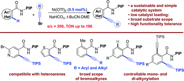 A sustainable and simple catalytic system for direct alkynylation of C(sp2)–H bonds with low nickel loadings