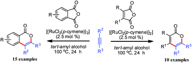 Ruthenium-catalyzed decarbonylative addition reaction of anhydrides with alkynes: a facile synthesis of isocoumarins and α-pyrones